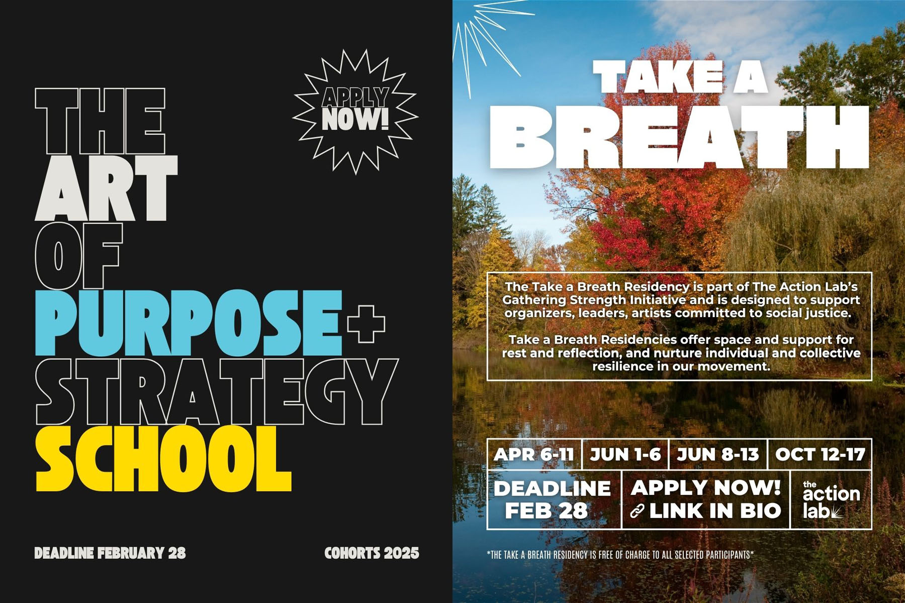 The Action Lab’s Gathering Strength Initiative creates vital space for healing, reflection and calm – for organizers, leaders, and social justice artists to cultivate individual and shared well being. As a part of this work, we cultivate practices of personal, institutional and communal well-being and resilience, and explore how such practices can reshape how we build our organizations and how we can envision and embody leadership. Through this work, we are developing a shared commitment to well-being, joy and health – not just as hallmarks of the world we want to create, but as features of the world we create and inhabit now.